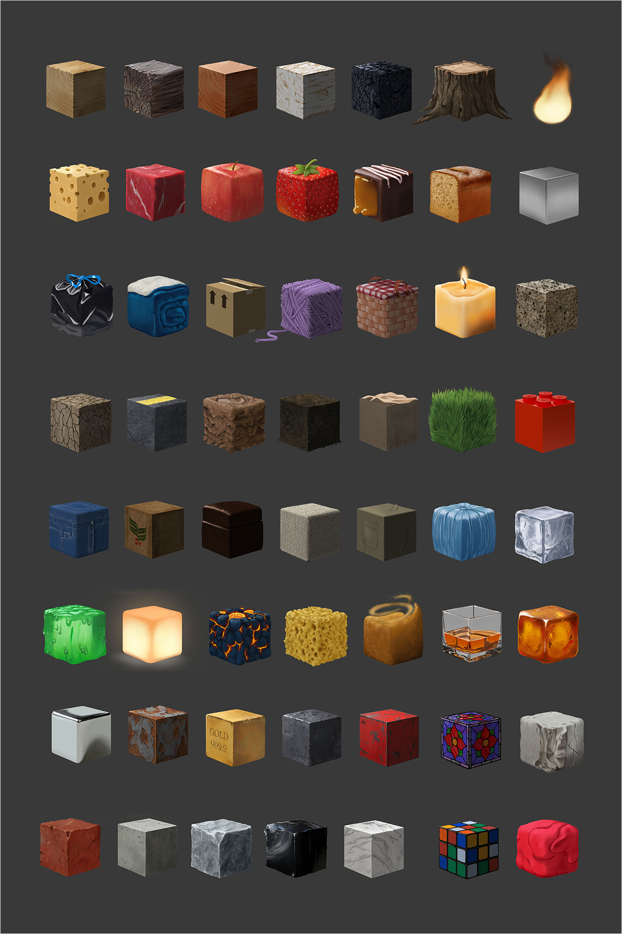 Title: Texture Study Cubes Category: Concept Art Class: GAM 233: Elements of Digital Painting