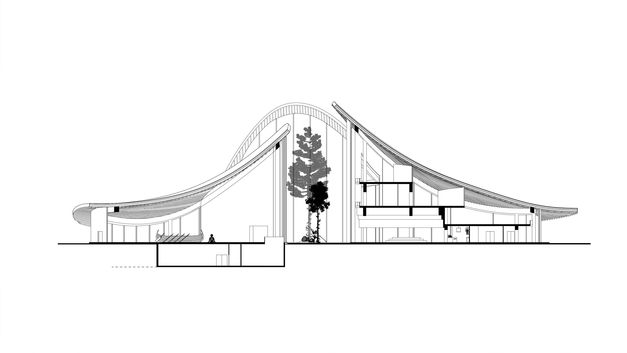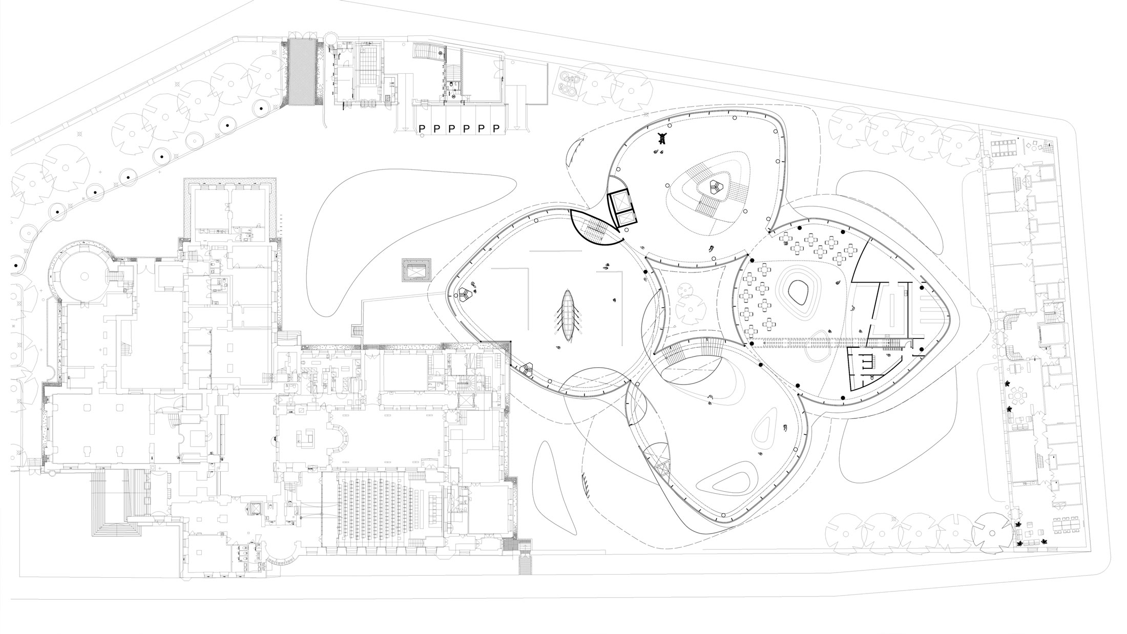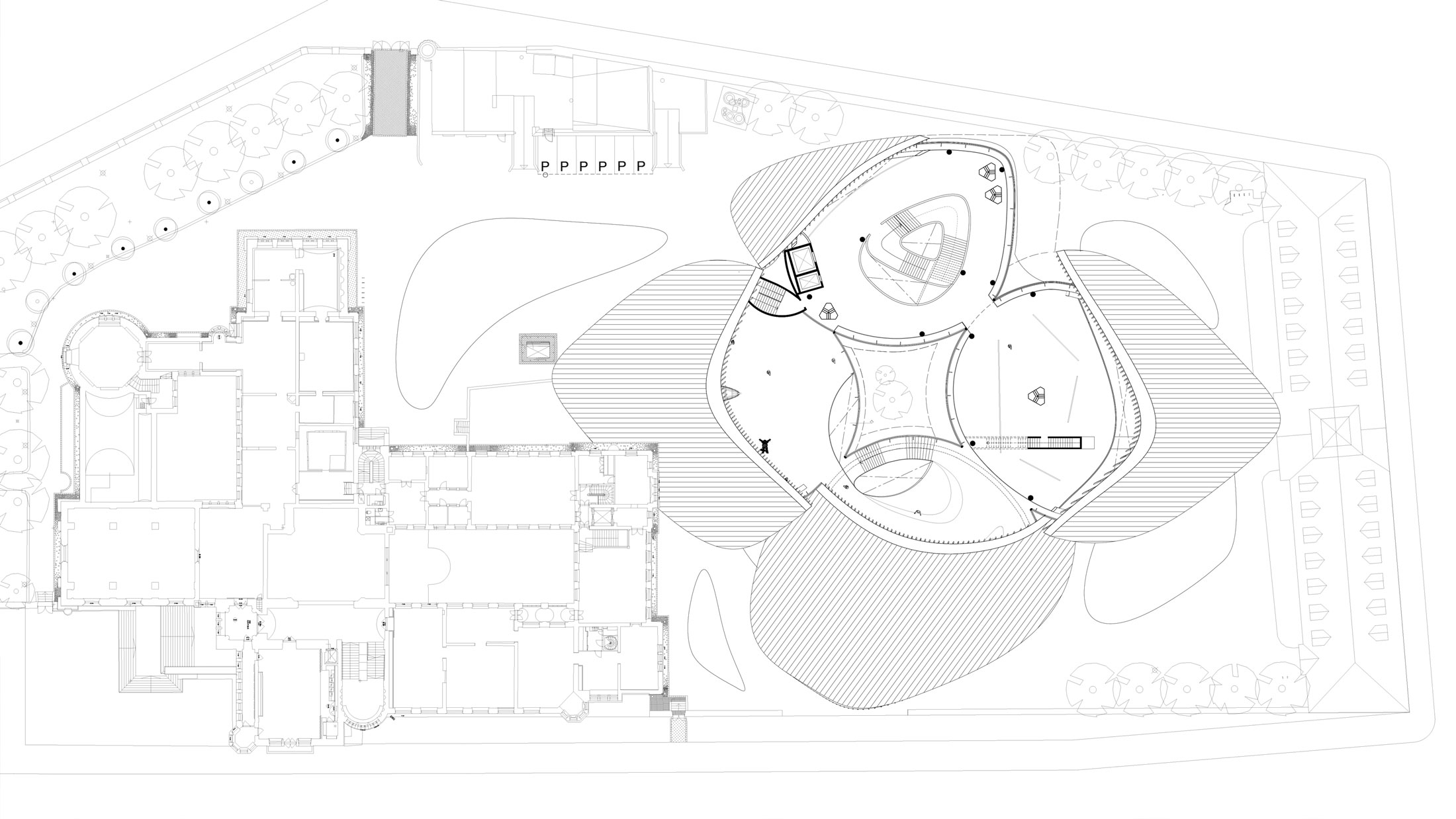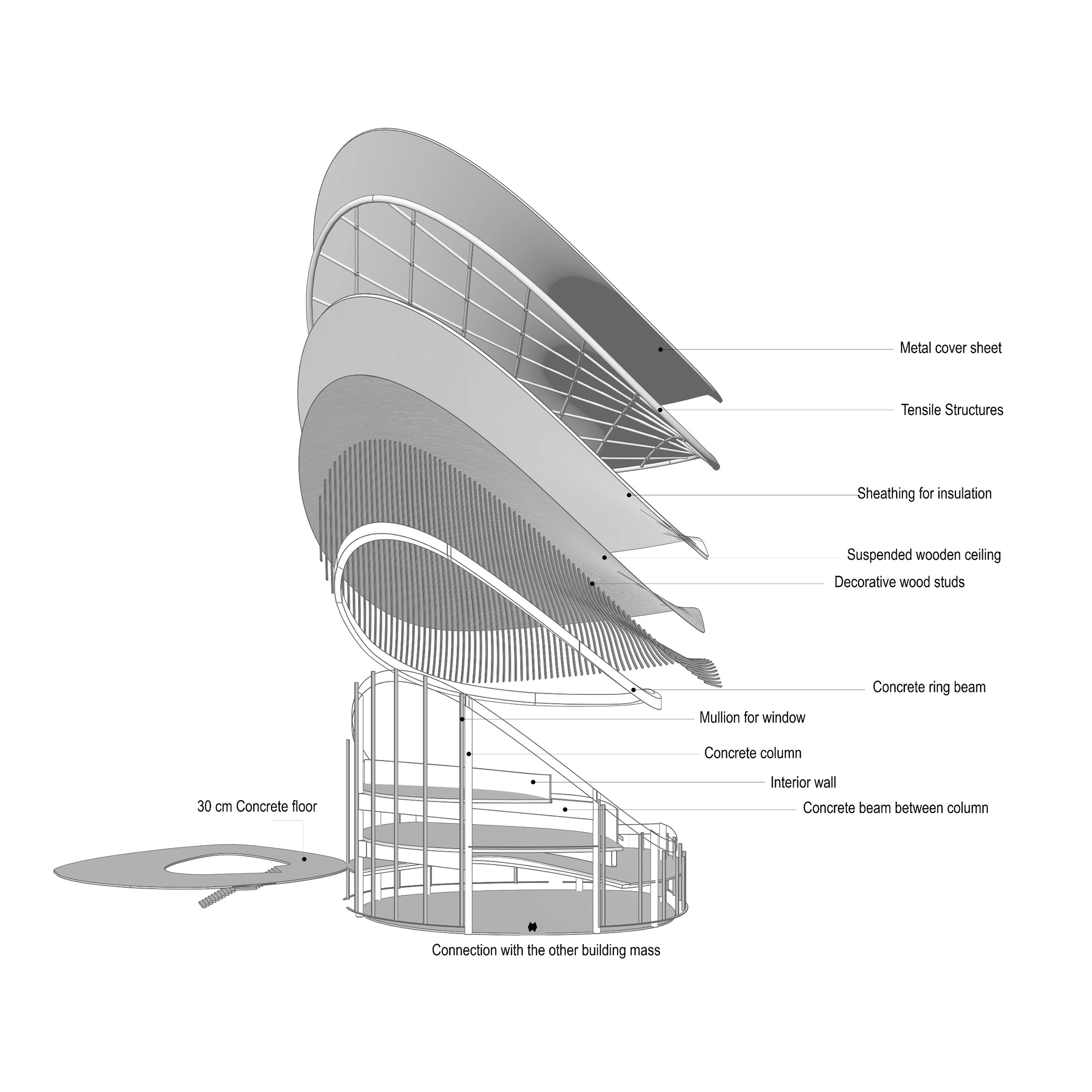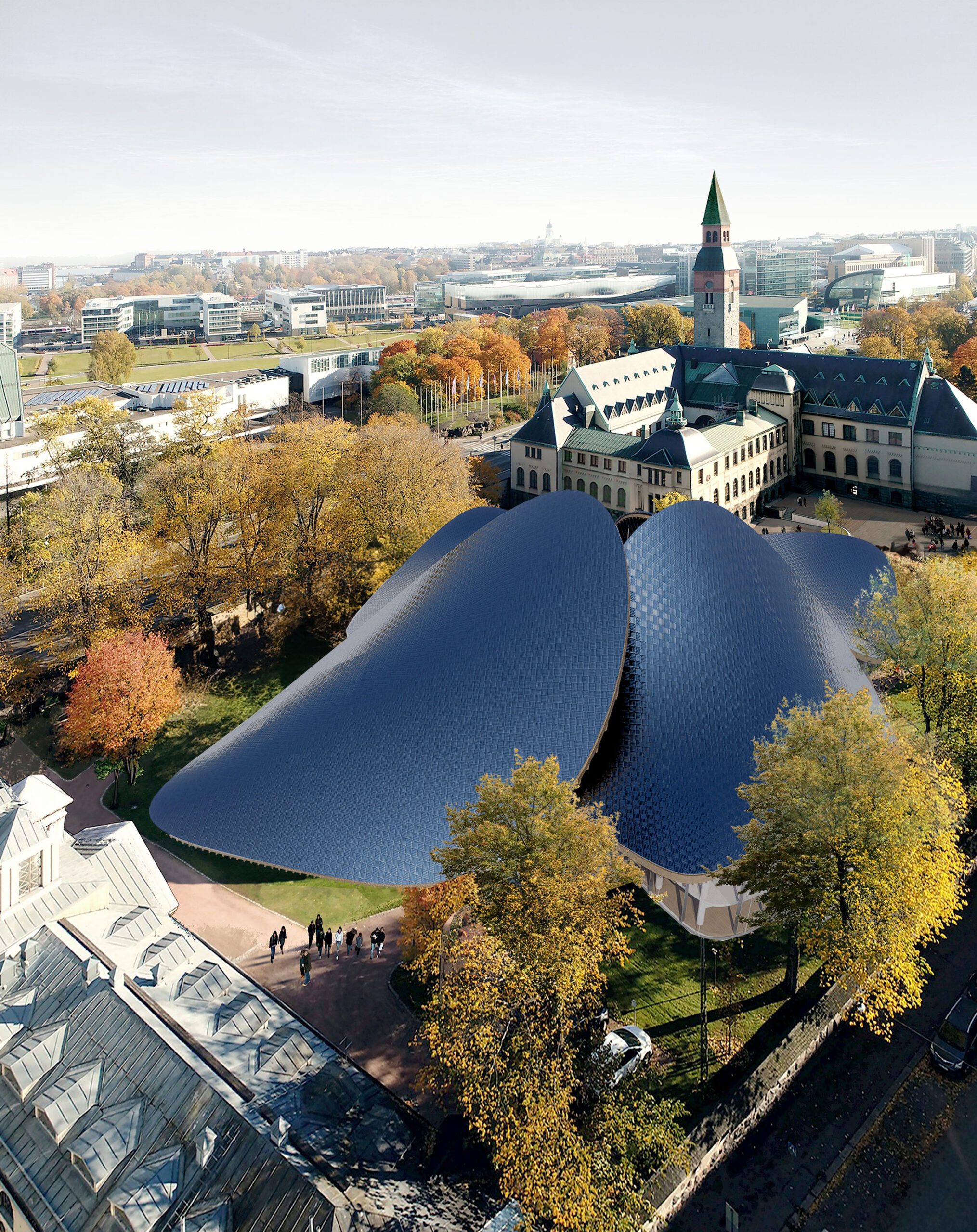 This project proposes an annex to the National Museum of Finland in Helsinki, developed in response to a 2019 open international competition. The site adjoins the historic main building by renowned Finnish architects Herman Gesellius, Armas Lindgren, and Eliel Saarinen, architects whose influence extends well beyond Finland’s borders. The new Annex is designed to host large-scale international exhibitions and support a broad range of cultural, artistic, and civic events, from performances and conferences to public gatherings. It will also include the museum’s main restaurant, helping to form a cohesive cultural campus with the existing museum and park. At its core, the project reinterprets Finnish national heritage through a contemporary lens. The concept of the museum annex reflects the evolving identity of modern Finnish society, grounded in a shared responsibility for the future. Architecturally, the Annex contrasts and complements the historic structure with a bold design of four hyperbolic paraboloid roofs, supported by concrete columns and a ring beam. This lightweight and transparent form introduces openness and accessibility, offering a powerful new symbol for culture as a catalyst for change. By framing national heritage as a dynamic and welcoming narrative, the Annex fosters dialogue between the past and the present, creating a vibrant space that embodies Finnish culture’s contemporary values.