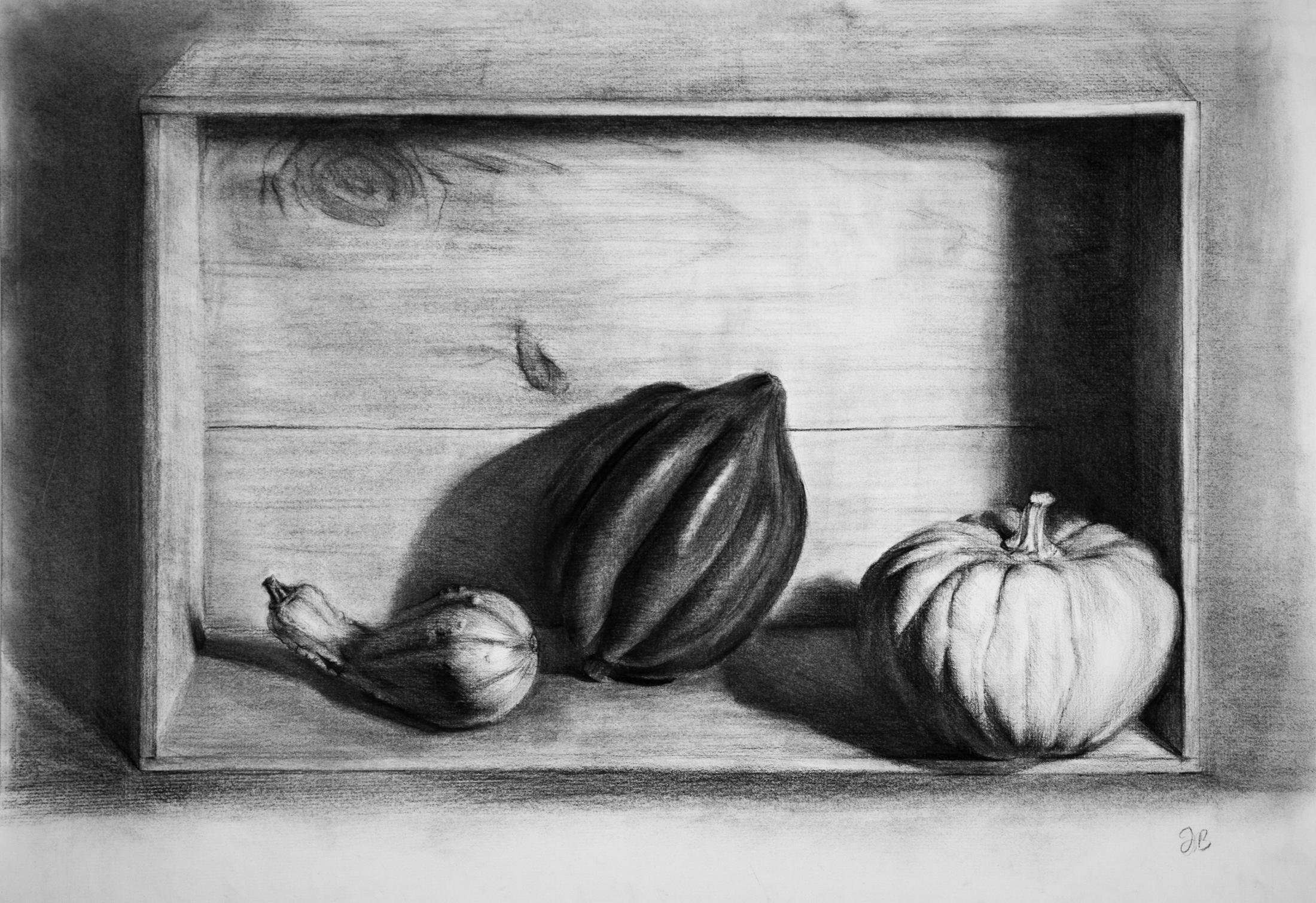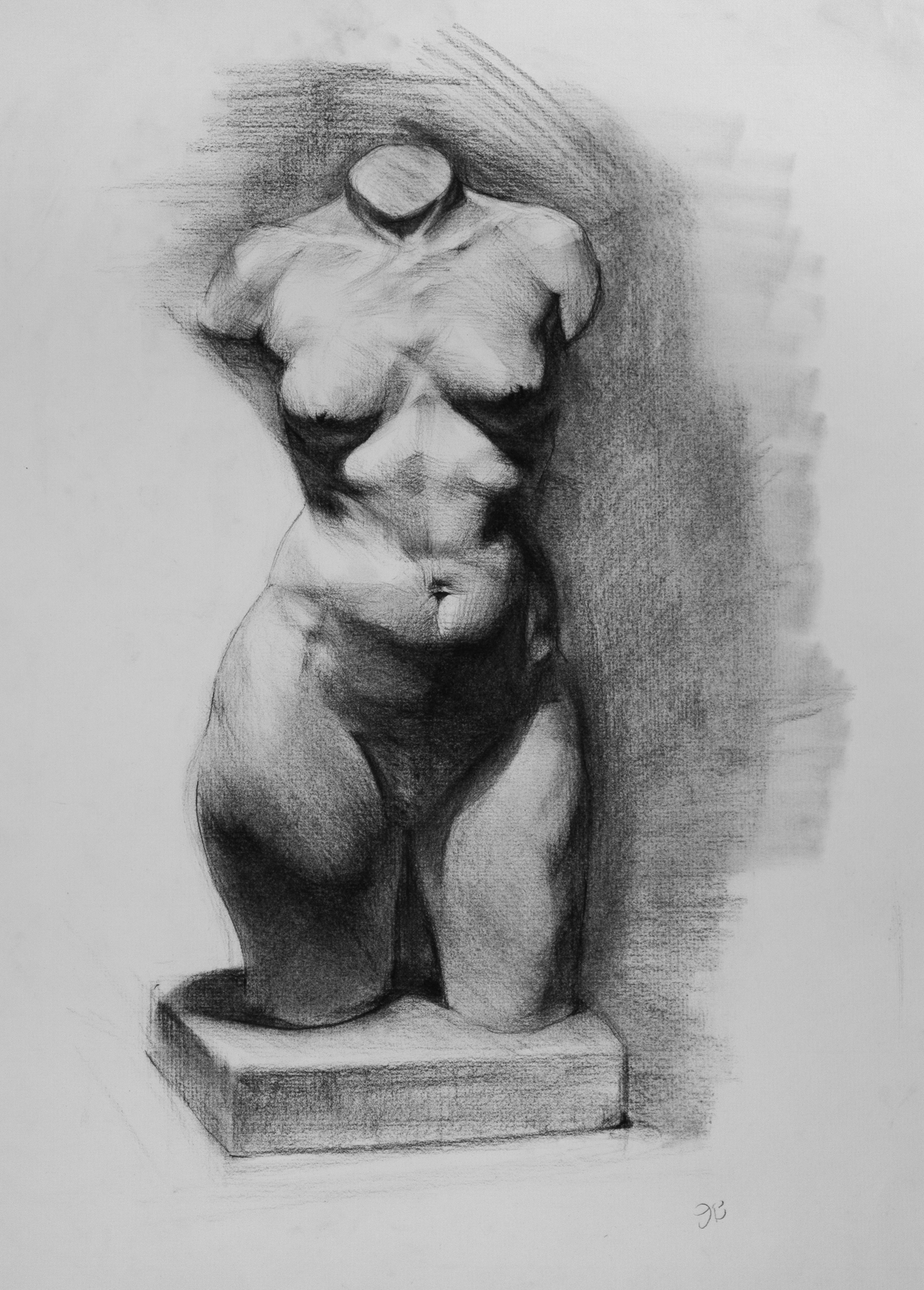 My chiaroscuro drawings are the result of absorbing the forms of the drawn subject, and restating them in charcoal. The process of restating changes my understanding of the subject and its emotional weight.