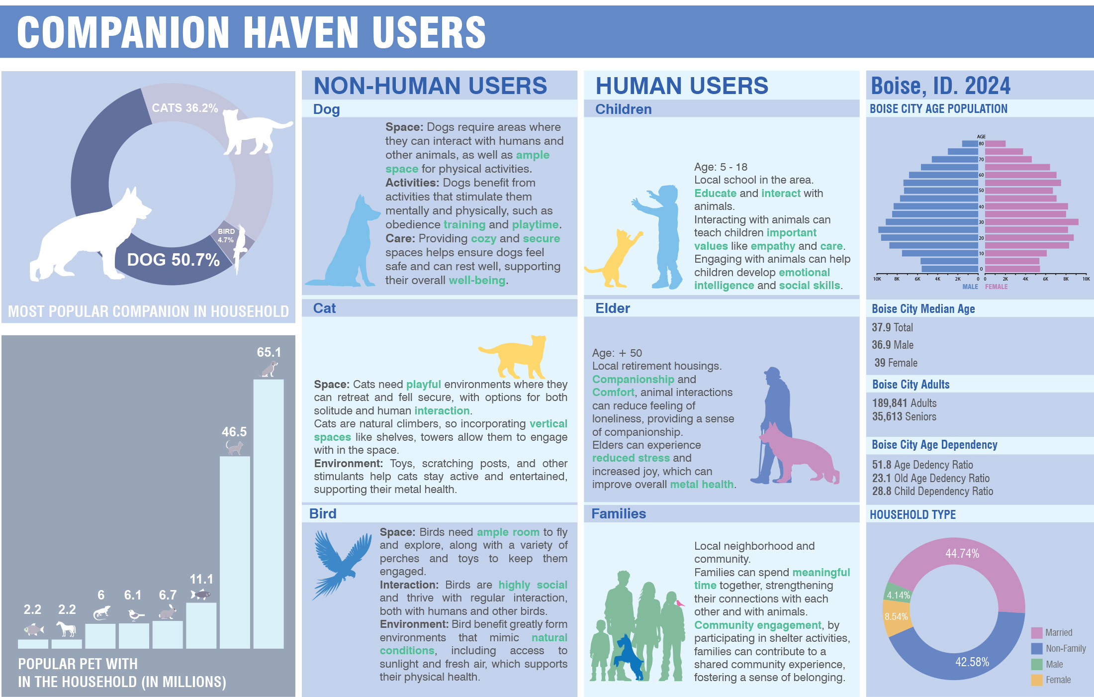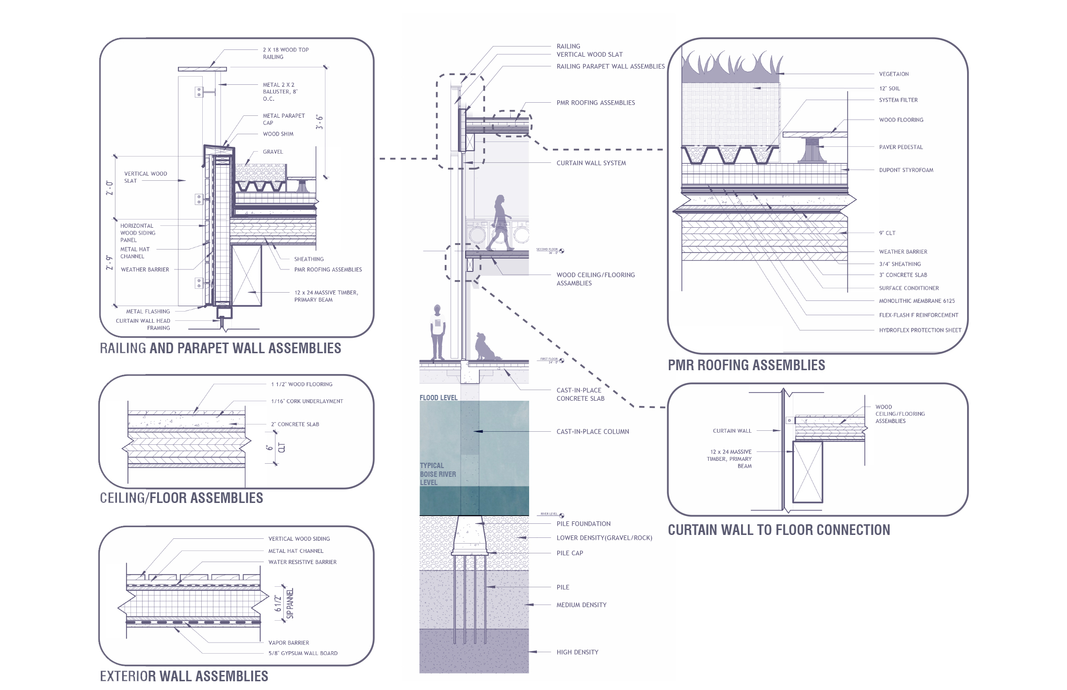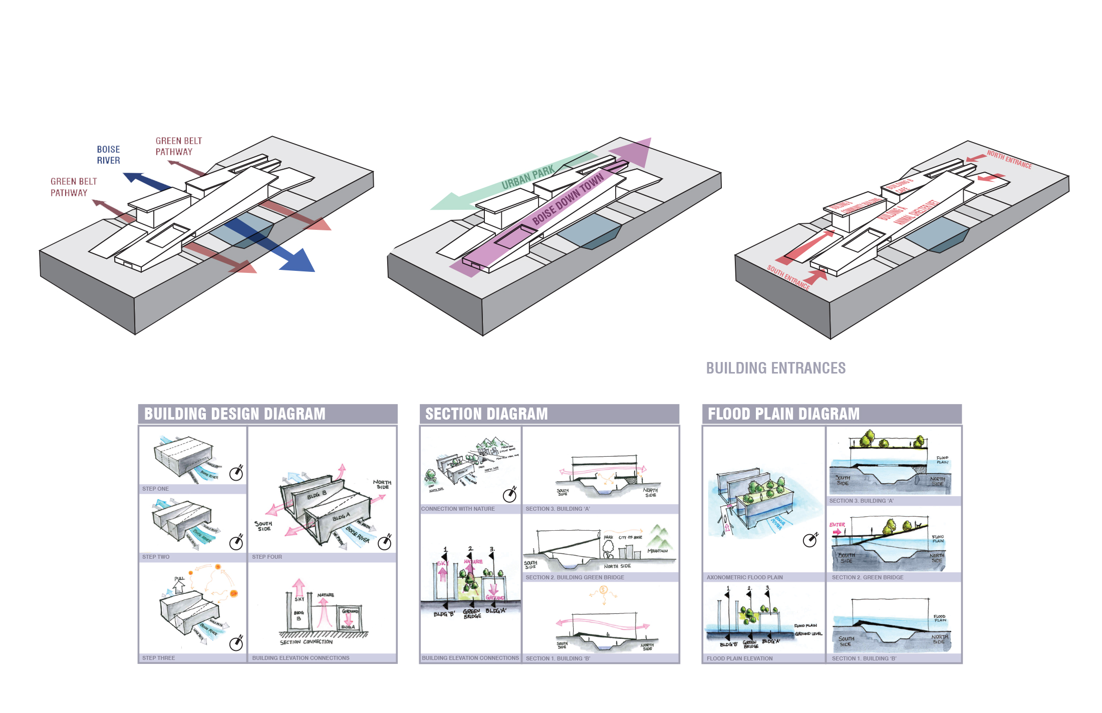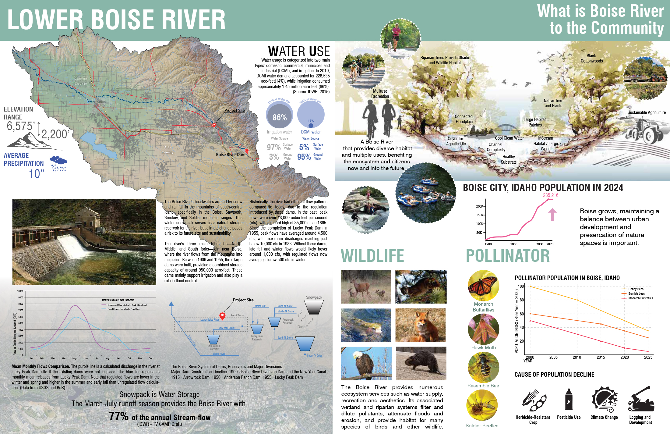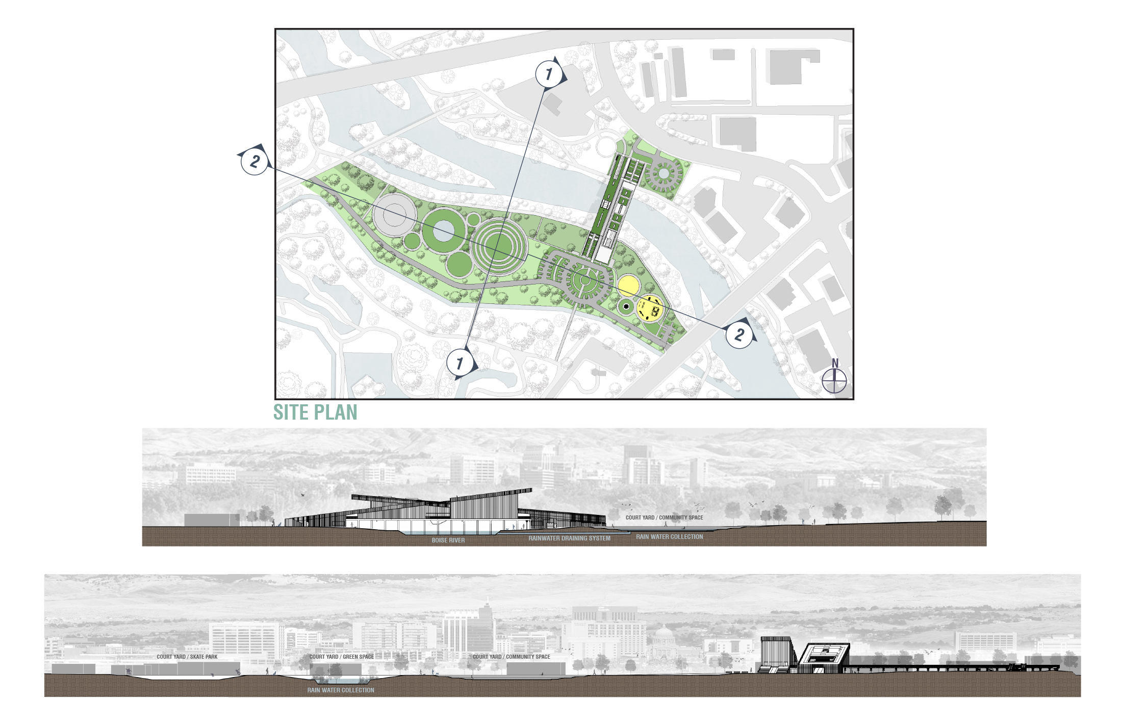 “Companion Haven” reimagines an animal shelter as a multi-species performative system—one that challenges anthropocentric norms by fostering spatial and sensory connections among human and non-human species. Situated within the Boise River watershed, the project engages the temporal rhythms of a dynamic riverine ecosystem, integrating seasonal design strategies for both flooding and drought conditions. Through cross-species programming, habitat-responsive site design, and community-oriented spaces, the proposal advances architecture as an adaptive infrastructure—supporting interspecies coexistence, environmental literacy, and shared use across shifting climatic and ecological conditions.