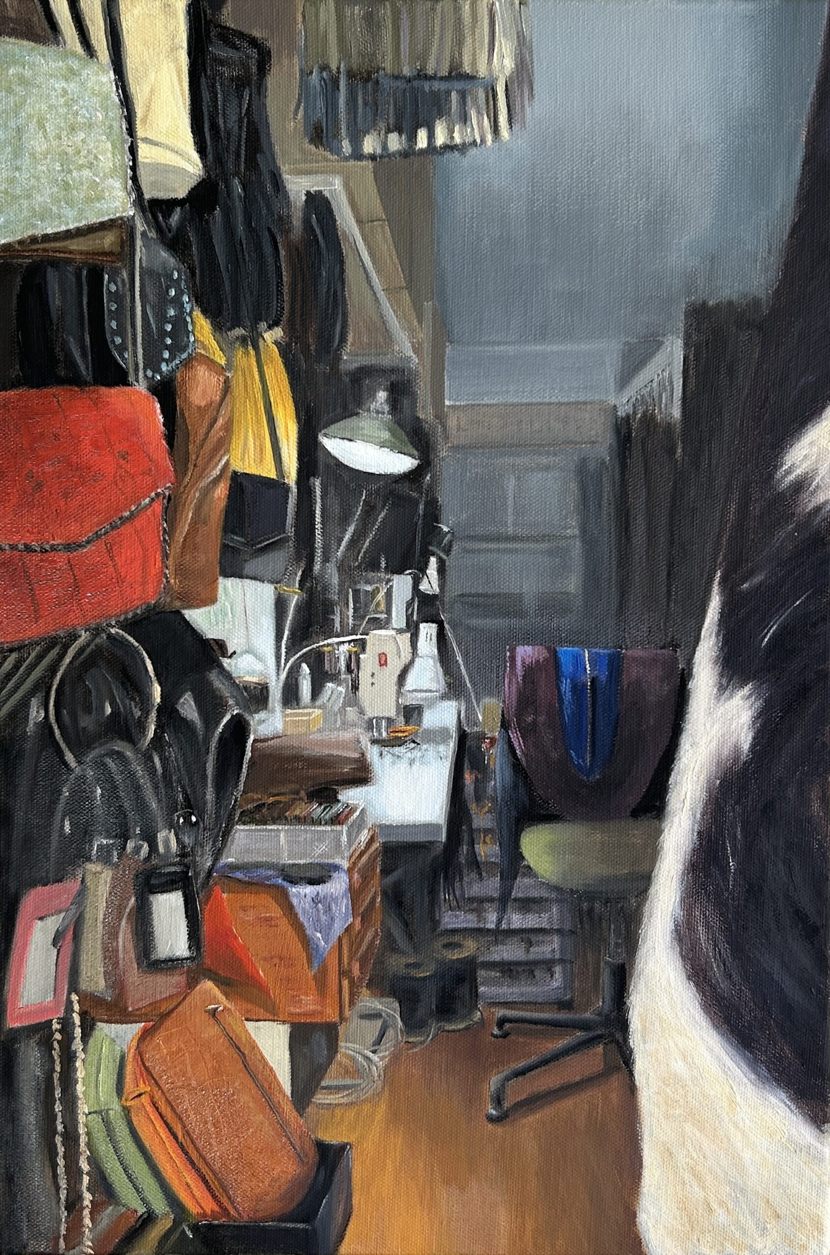 He is creating a portfolio of paintings that depict the residue of human creativity which exists in maker-spaces during their after-hour periods of inactivity. These local spaces in Mark’s town of Sonoma, California are filled with tools and materials that relate the unique story of how each artisan creates their craft. Examples of such spaces are a metal sculptor’s studio, florist’s warehouse, leather goods maker’s workshop, and an artisan cheesemaker’s facility.